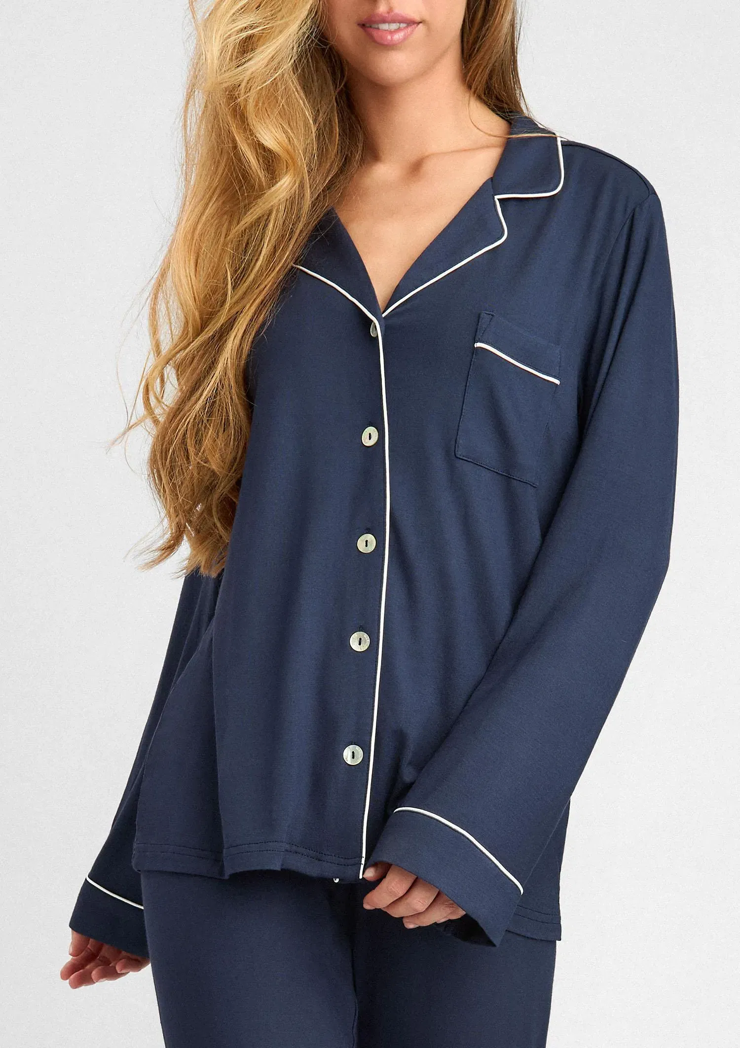 Pajama blouse unbuttoned natural fiber tencel long sleeve Hannah Poupee Marilyn